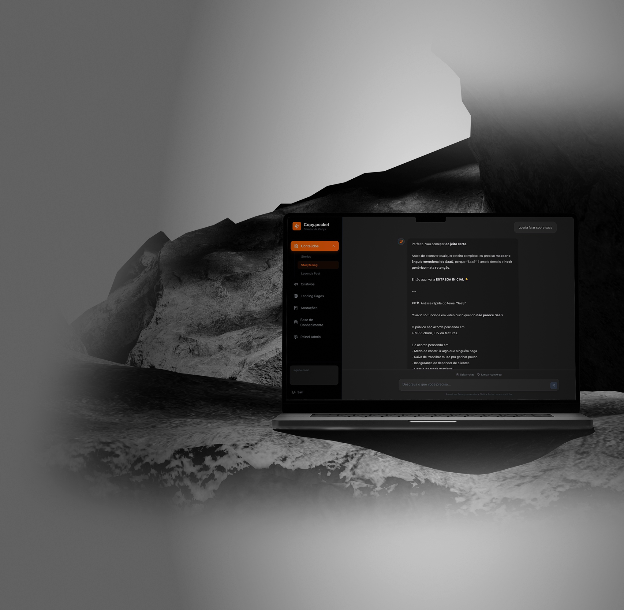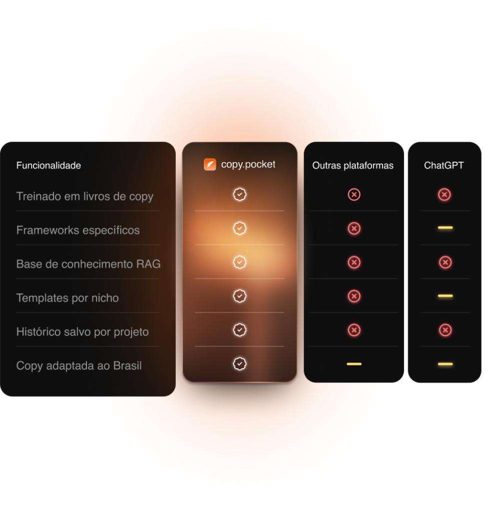 O copy.pocket é seu copywriter disponível 24/7 por menos de um café por dia! Enquanto copywriters cobram R$500 a R$5.000 por projeto, você tem acesso ilimitado a copies profissionais instantâneas sempre que precisar.